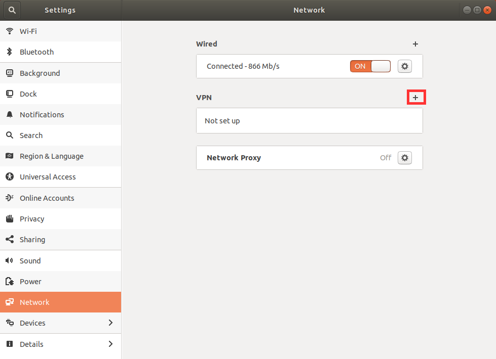В открывшемся окне нажмите на «+» в разделе VPN.